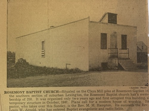 Rosemont Baptist Church came to life in 1947, starting as a tent revival at the railroad tracks on Rosemont Garden. A determined group of 32 Christians had a desire to bring Christ to an evolving south Lexington, Kentucky. Members mortgaged their homes to finance the construction of a home for the church.